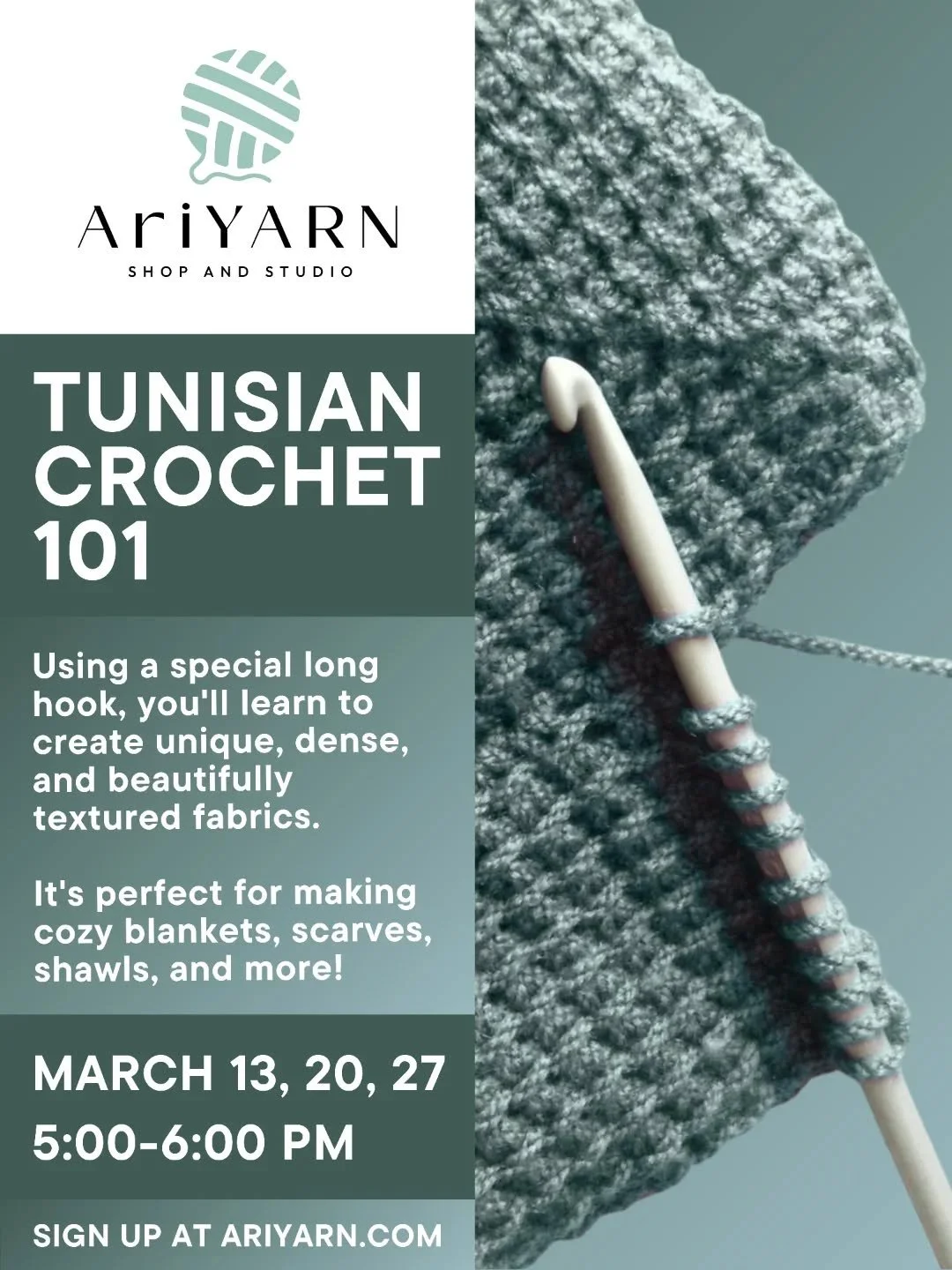 - AriYARN Shop and Studio (local yarn store + learning studio)